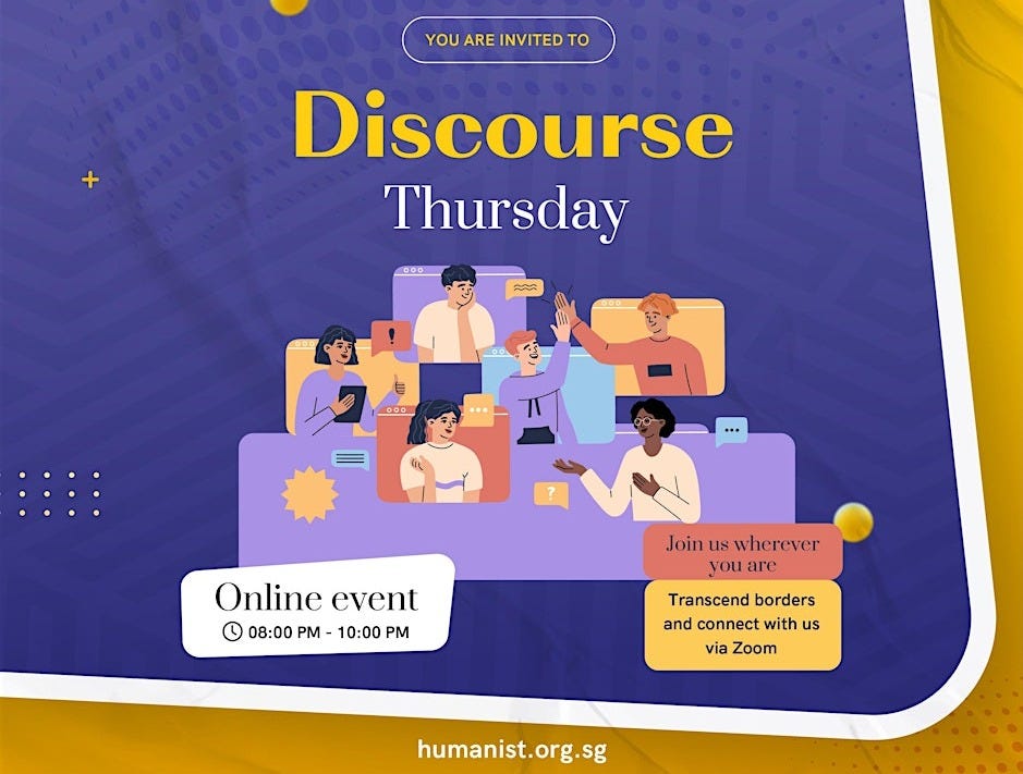 If you’ve ever felt frustrated by conversations that go nowhere - online or offline and you care about changing minds (including your own), rather than scoring points, I invite you to join the upcoming session next month here → Humanist Society Singapore - Discourse Thursday - Thinking Clearly Together